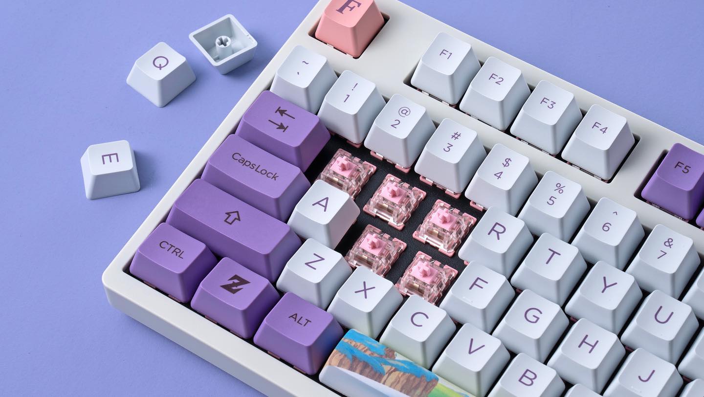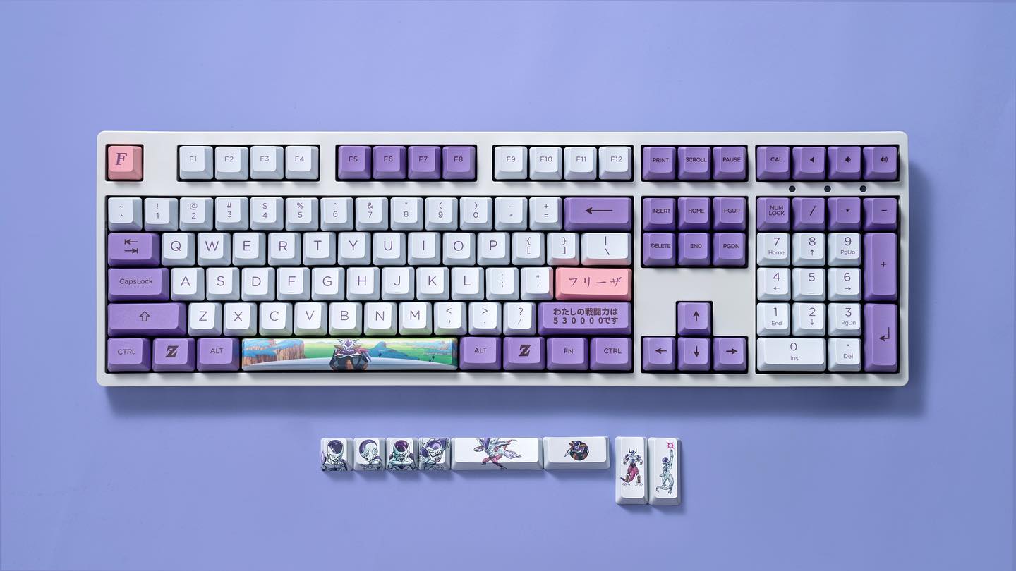 Exclusive Dragon Ball Z Design with custom keycaps and themed color scheme inspired by Frieza’s legendary form — elegant white, purple, and pink hues that bring the character to life.